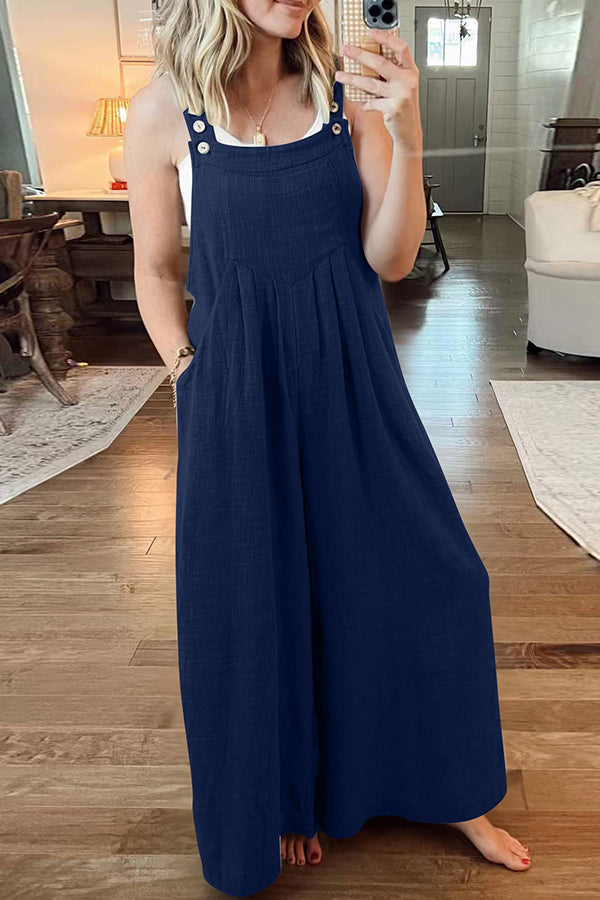 Cotton and linen loose casual one-piece wide-leg overalls